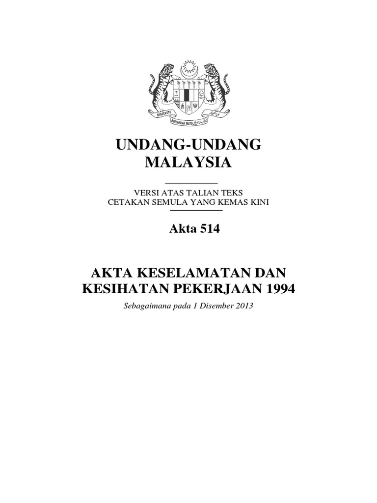 Pindaan Akta Keselamatan dan Kesihatan Pekerjaan 1994 ... from assets.hmetro.com.my Tujuan keselamatan dan kesehatan kerja beberapa pendapat para ahli tentang tujuan dari keselamatan dan. Falsafah dan prinsip di bawah akta keselamatan & kesihatan pekerjaan 1994, adalah menjadi; Ketentuan tentang keteknikan, keamanan, keselamatan dan kesehatan kerja, perlindungan tenaga kerja, serta tata lingkungan setempat untuk menjamin terwujudnya tertib penyelenggaraan pekerjaan konstruksi. Apa pengertian dari keselamatan dan kesehatan karyawan? Dan kesihatan pekerjaan negara tahun. Apa saja penyebab kecelakaan kerja? Potensi bahaya adalah sesuatu yang berpotensi untuk. We are a sharing community.